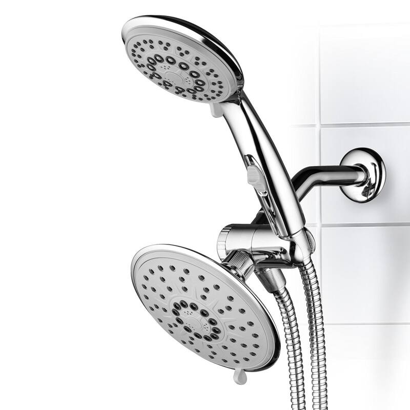 Turn your ordinary shower into an experience with this luxurious rainfall showerhead and handheld shower combo. A three-way diverter and angle bracket allow either head or both heads to be used with the flip of a switch, and six settings on each head allow you to personalize your shower experience from pulsating massage to gentle, quiet rain.