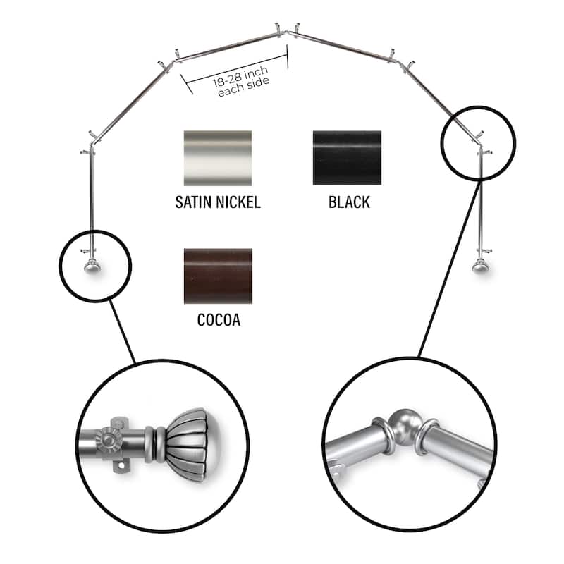 InStyleDesign 13/16" Gemma 6-Sided Bay Window Curtain Rod (18-28 inch each side)