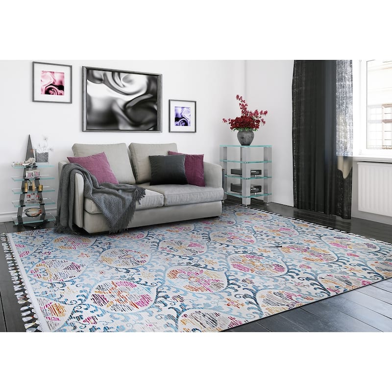 With fun, bright colors, the Jewel Collection is an exotic take on traditional designs and is topped off with unique tasseled fringe for a truly exquisite look. Face-to-face Wilton woven of 100% heat-set Courtron polypropylene to enhance each design, these fashionable floor coverings can be used as a purely decorative touch or a cushy landing under your furniture. Whichever way you decide to use it, the Jewel is durable enough to be enjoyed in almost any area of the home. These stylish accent pieces will set the stage for the rest of your decor, making it the perfect way to incorporate an electrifying pop of color for spaces in need of a transformation.