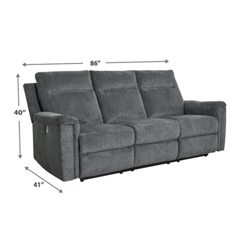 Jinu Power Recliner Sofa, 86 Inch, Dark Gray Polyester Micro Chenille