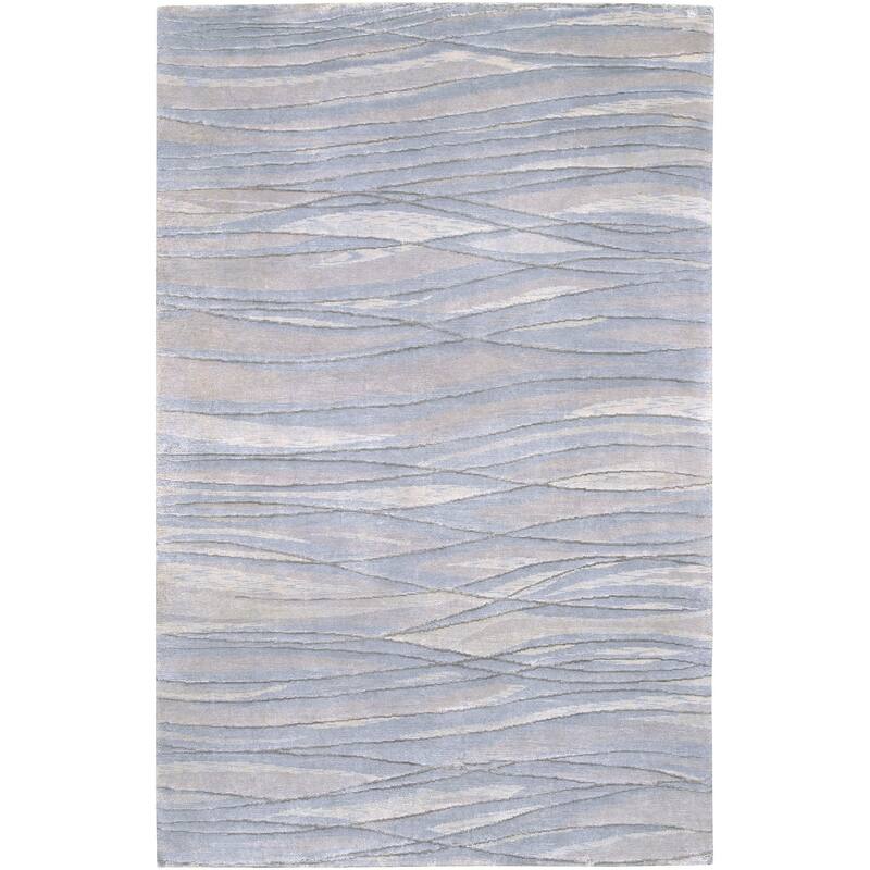 Hand knotted in Southwest New Zealand wool, this rug features a contemporary design with silk accents and a plush pile. Colors of dove grey, flint grey, and elephant grey accent this area rug.