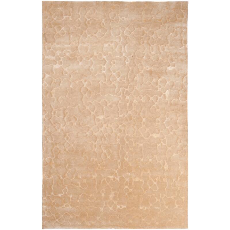 Hand knotted in Southwest New Zealand wool, this rug features a contemporary design with silk accents and a plush pile. Colors of biscotti, camel, and caramel accent this area rug.
