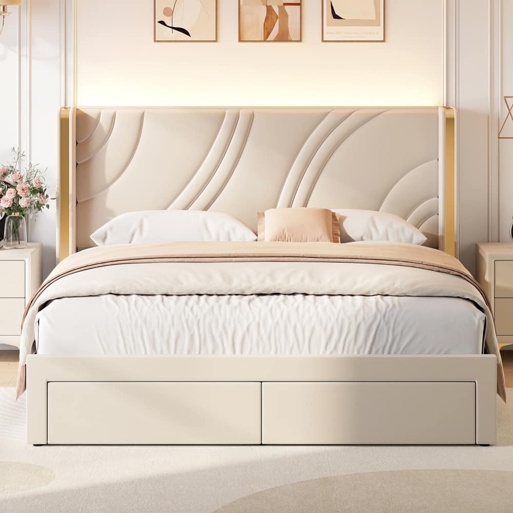 The AC power supply (2 AC outlets + 2 USB ports) is located on the shelf of the headboard, perfect for charging your phone, tablet, or headphones while entertaining in bed without having to get up.