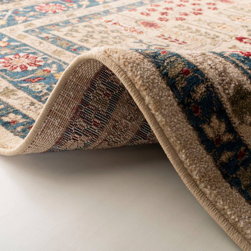 Conjuring up Silk Road imagery of Cyprus trees, flowering branches and shrubs, this artful Margaux Lauren Ralph Lauren area rug is a visual delight. This rug displays elegant scrolling vines and rosettes in the border. Made using easy-care synthetic yarns in a medium cut pile, this traditionally-styled rug is soft yet durable enough for any room in the home or office.
