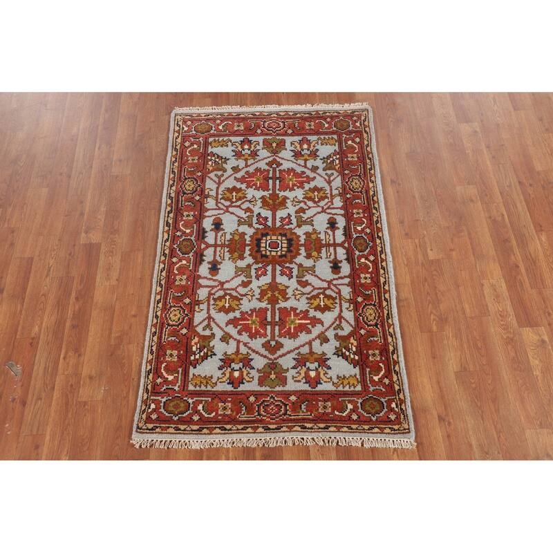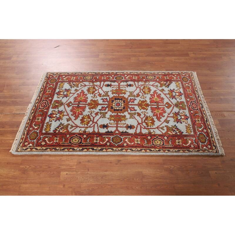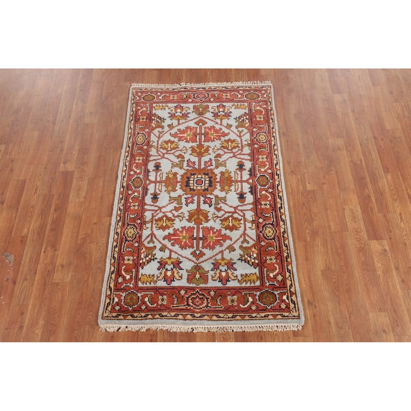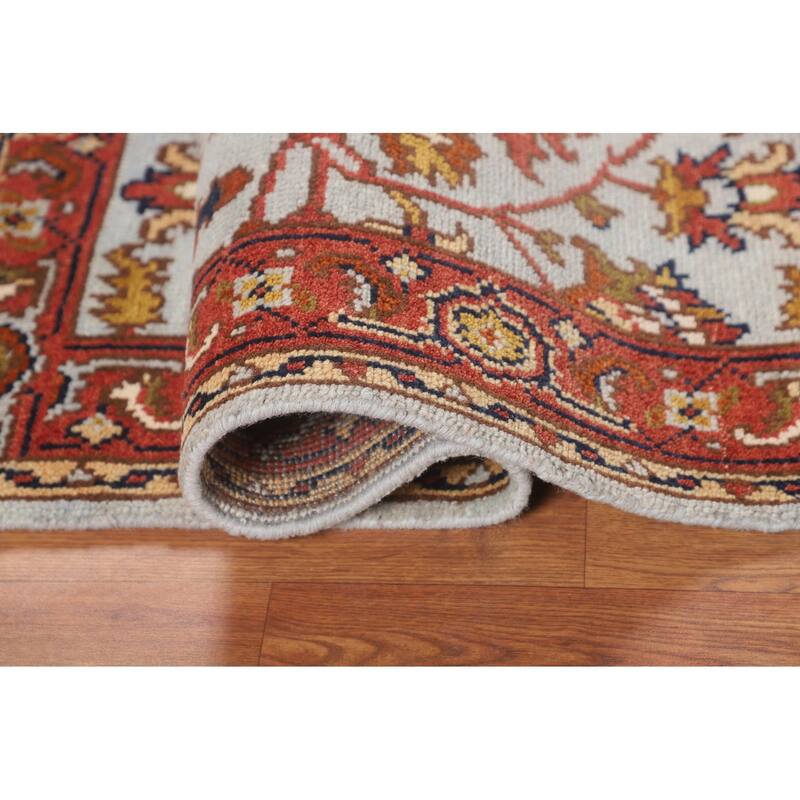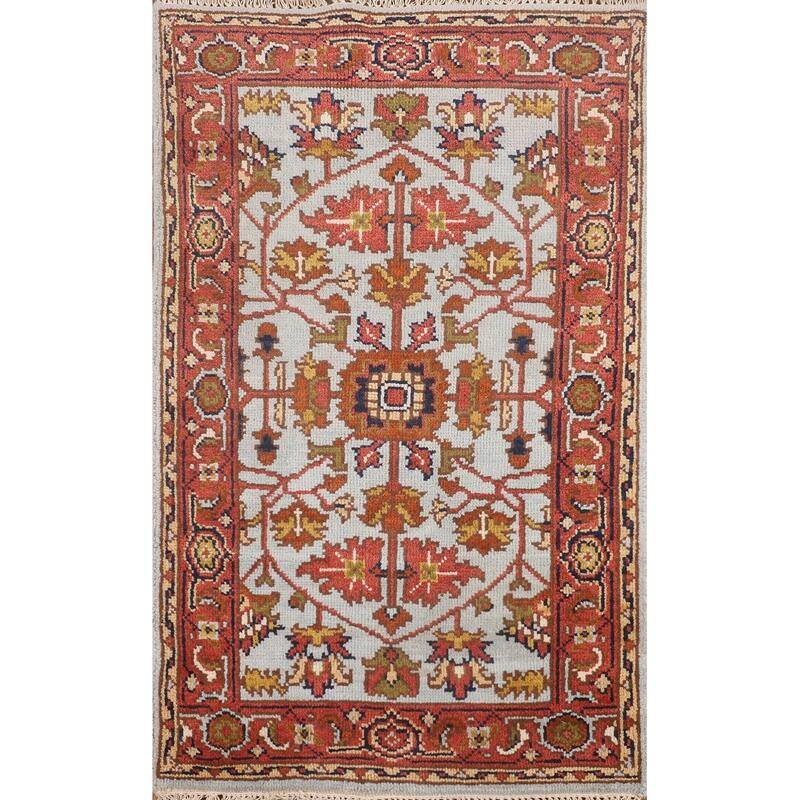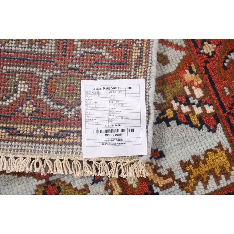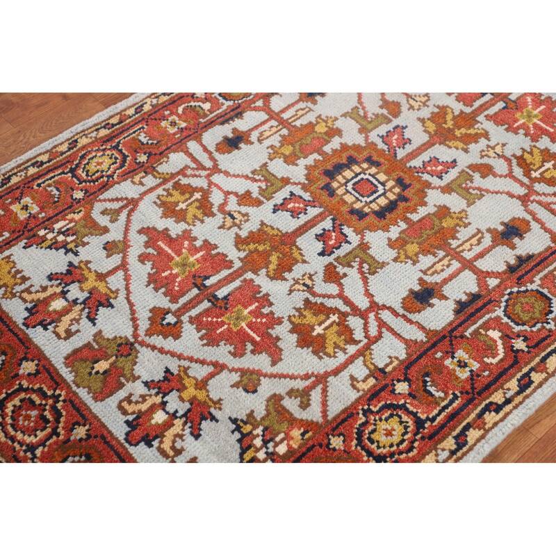 Light Blue Heriz Serapi Oriental Foyer Rug Hand-Knotted Wool Carpet - 2'11"x 4'11"