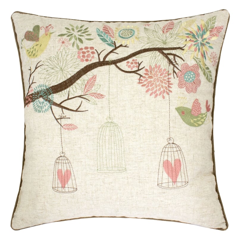Lilly Embroidered Linen 20" Square Decorative Throw Pillow