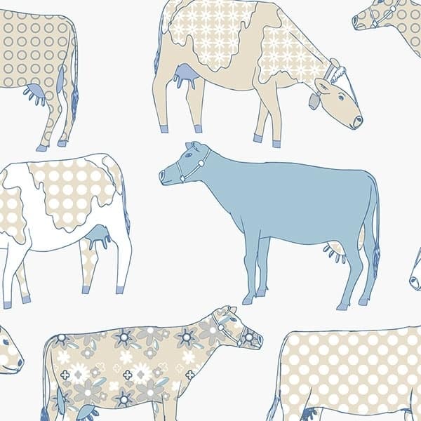 Cow Parade Petersburg 32.7 Ft. x 20.5 In. Vinyl Blue Cows Floral Toile Wallpaper Covering