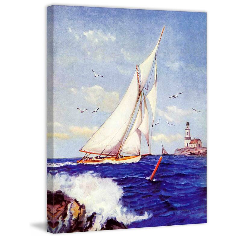 Marmont Hill - "Sailing by the Lighthouse" by Albert B. Marks Painting Print on Canvas - Multi-Color