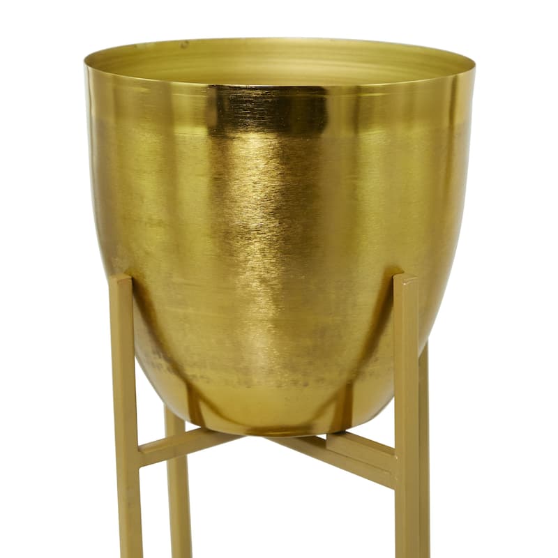 Metal Indoor Outdoor Planter with Removable Stand - Set of 2 Silver, Gold, Black - CosmoLiving by Cosmopolitan