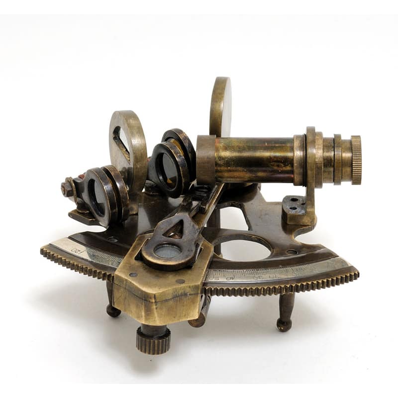 This is a functional replica of the nautical sextant made of high quality brass. Each component is crafted with finest craftsmanship. Using rack and pinion mechanism, this sextant was given a heavy pattern of solid brass. Available in antique brass finish and it comes in a beautiful leather gift box. This sextant is a great addition to any nautical collection.