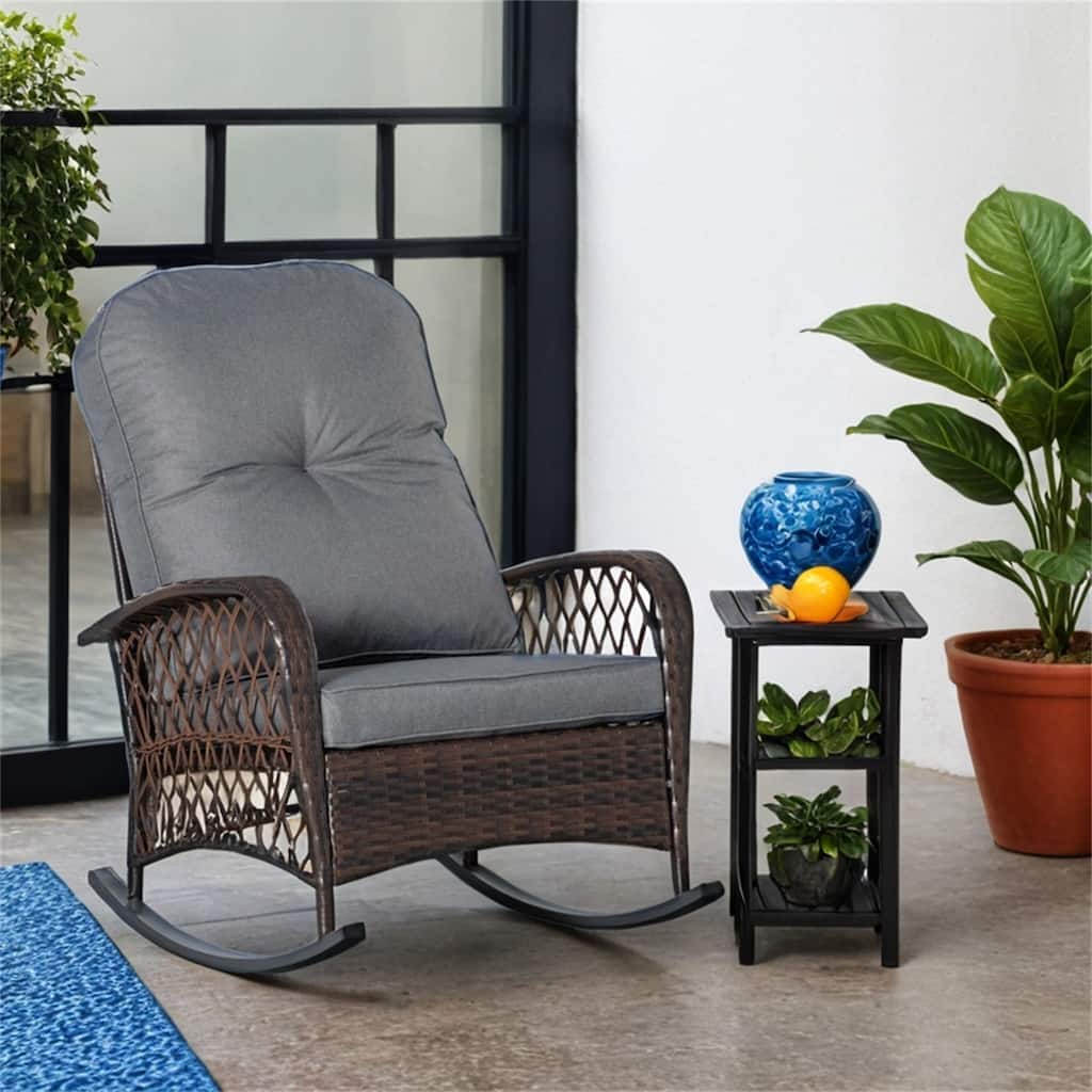 Descriptions:Can't choose between an Adirondack, a wicker chair, and a rocking chair? Have all 3-in-1. Outsunny offers a PE rattan rocking chair with an Adirondack shape. Sway back and forth through the breeze. Our patio rocking chair has a tilted seat, a tall back, and a fully cushioned surface. Unwind and indulge. Hand woven with polyethylene, it offers the same look as classic wicker with better resistance to UV and water. Get out and get comfy in an Outsunny Adirondack rocking chair.