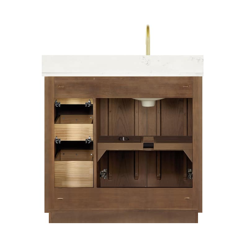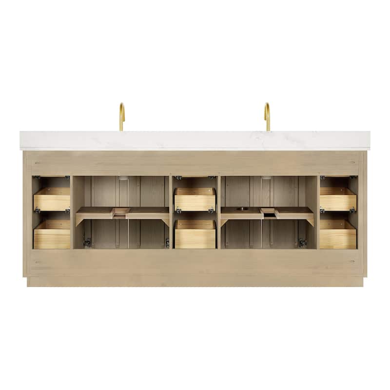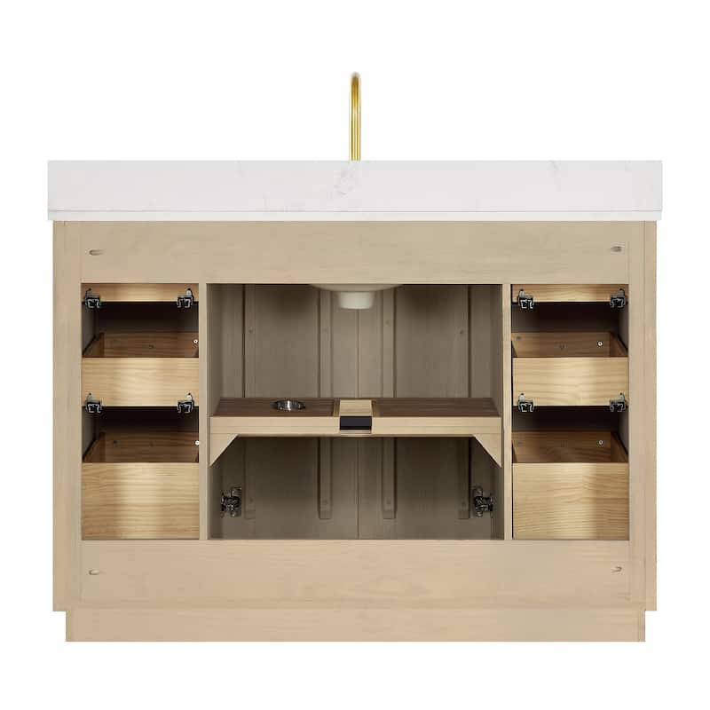 Ā· Modern Top: 0.8"-thick, quartz stone top with backsplash. The countertop is scratch-resistant, wear-resistant, and easy to clean.