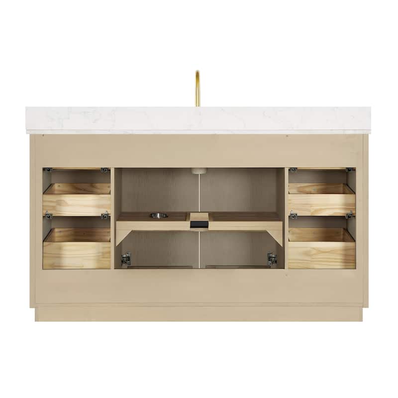 60 inch(Single sink) - 2 soft-closing doors and 6 sturdy, soft-closing dovetail drawers.