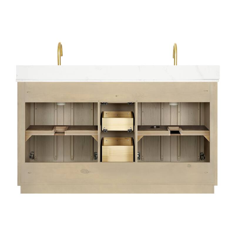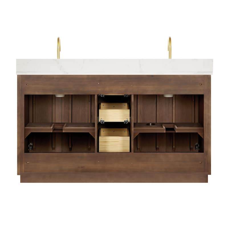 60 inch(Double sink) - 4 soft-closing doors and 3 sturdy, soft-closing dovetail drawers.