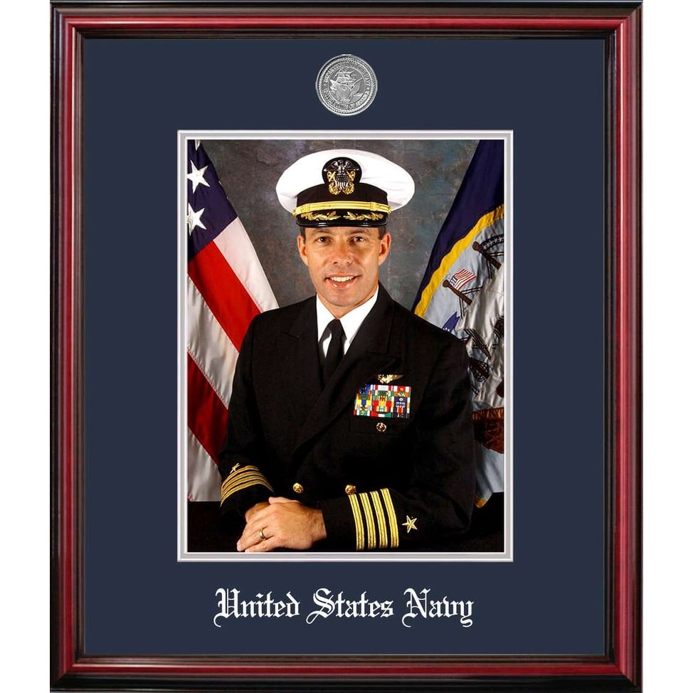 Patriot Frames has created fine-quality Petite Cherry Portrait Frame with Silver Plated Medallion . These prestigious, yet affordable frames are custom made for your Military Portrait and allow for easy insertion- there's no need to send your valuable document.