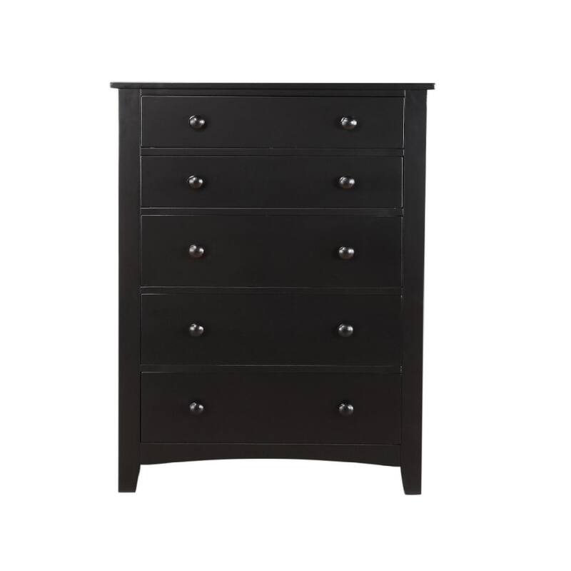 Pine Wood With Varied Size 5 Drawer Chest, Black