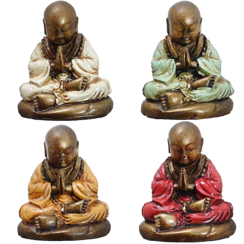 Bring spiritual design, Asian culture, and meditative calm into your home with this peaceful Praying Monk figurine set. Molded with eco-friendly Alabastrite, each of these meticulously detailed statuettes features many symbolic elements such the elongated earlobes that listen to the needs of the world, the beaded malas to focus meditation, and the hands together in the Anjali mudra, welcoming you home. Intricately hand painted, this collection inspires mindful energy and is a perfect Far-East accent for any home, office, or dorm room.
