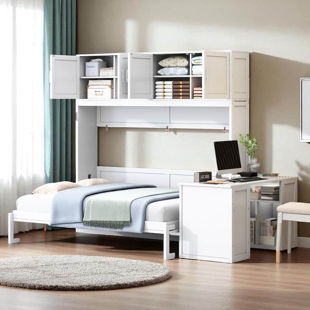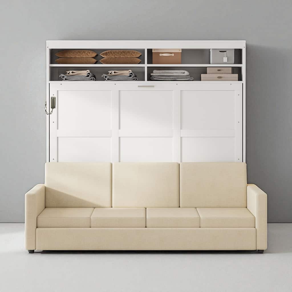 Make one room do it all with a queen Murphy wall bed that hides away to free floor space and opens in a few simple steps. A built-in desk transforms the unit into a work or study hub by day, while two small LED lights and a USB charging station keep evenings productive and devices powered. The rebound-assisted fold and dual-piston mechanism deliver smooth, controlled motion, and wooden slats support your mattress without a box spring.