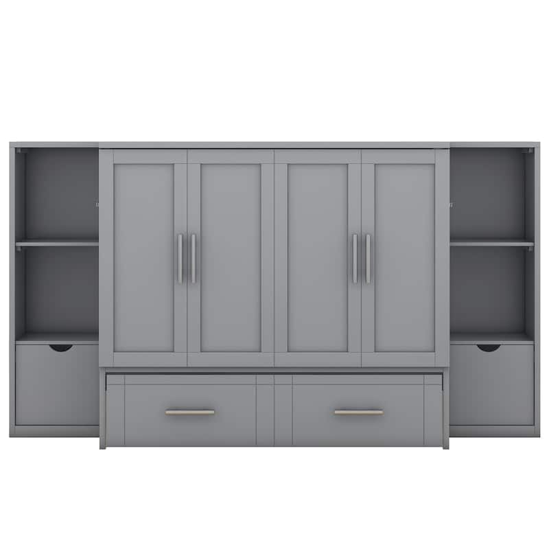 Queen Size Murphy Bed with Shelves, Drawers and USB Ports