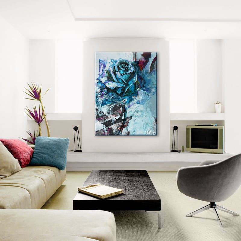 Painted Petals XXXIX depicts a floral still life and is stylized like a piece of street art. The shades, purples and electric blues make the piece look ethereal, imbuing a modern and vibrant aura. This sophisticated piece of wall decor will enliven your home. Made in the USA from US and imported parts.