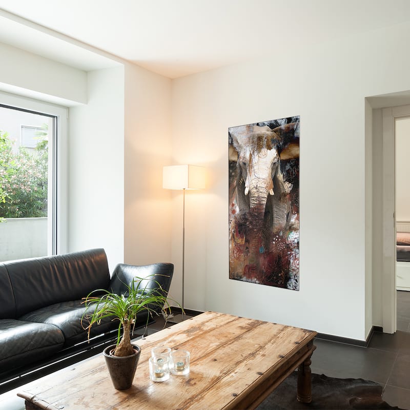Saddle Ink Elephant III' is a great way to add the appeal and strength of a tremendous elephant with an unexpected, more casual mood. The extreme vertical nature of this canvas, as well as the swirling movement and earthy tones make it unique and fun. Create a striking design when you place this spectacular piece to your already colorful and lively space.. Title: Saddle Ink Elephant III Artist/Brand: Ready2HangArtImage Dimensions: 40 inches high x 20 inches wide Overall Dimensions: 40 inches high x 20 inches wide x 1. 5 inches deep, Model No. E3Ready2HangArt is a USA based vertical decorative art firm seeking to enhance people's surroundings with innovative designs, extraordinary quality, and unparalleled value. ' R2H makes #decorating simplified. This handsome piece of wall decor will update your room. Made in the USA from US and imported parts.