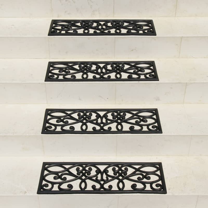 Featuring a classical European design, the "New Amsterdam" mats will bring an Old World charm to your home. Possessing excellent protective qualities and made using rubber recycled from old tires, this mat is cost-effective, durable and sustainable over the long term. Buy this to bring the perfect mix of aesthetic style and rugged functionality to your home today! These non-slip treads are very easy to maintain. For the best cleaning results, wipe the mat with a cloth or towel, or you can rinse it with water. This is the perfect DIY product. You can simply place it down wherever you need it to be. If you want to make sure that it really stays in place, then simply attach double-sided adhesive tape underneath it. The rubber material that makes up these treads is inherently slip resistant. Having an anti-slip protective mat around your household will help keep yourself and others safe because the chances of slipping and falling will be greatly reduced. Don't risk a terrible ordeal; get some protection with these non-slip rubber step mats. Rubber, both natural and reclaimed, is also good at resisting the effects of moisture. Mold and mildew will have a very hard time trying to make a dent in these tough treads. You also do not have to worry about excess water getting trapped in this mat because the gaps in between the elegant design lines are meant to drain away all the mud and water that come into contact with the mat.