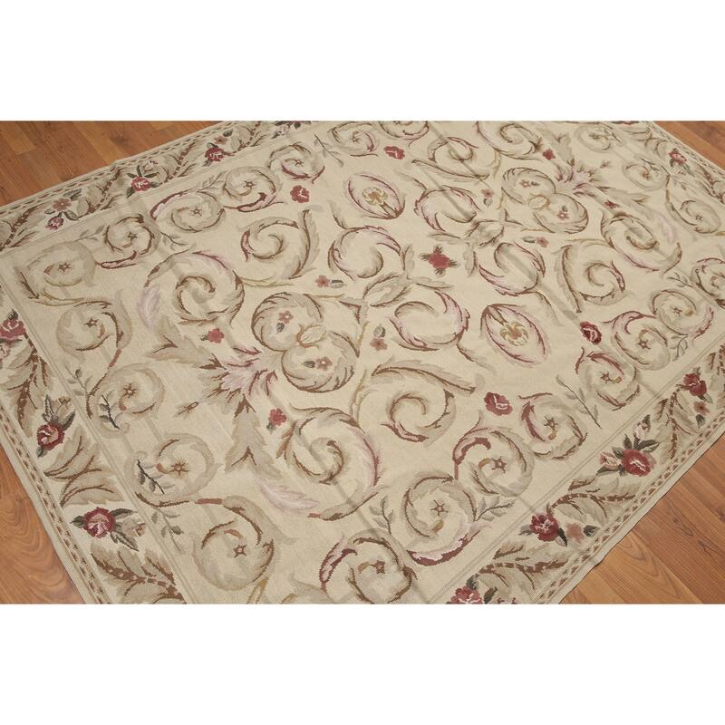 Rustic Botanical Scrolls Wool Handwoven Needlepoint Area Rug (5'5 x 7'8) - Tan/Brown - 5'5" x 7'8"
