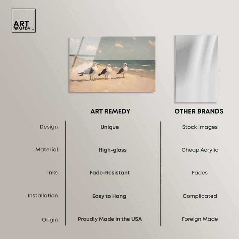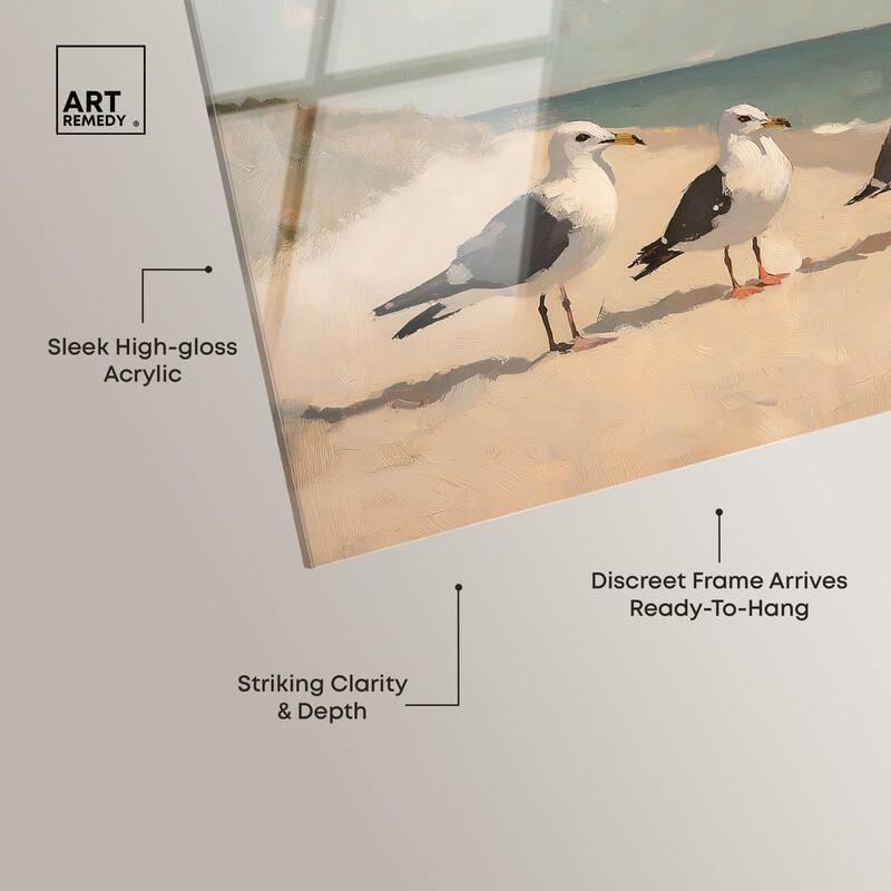 Seagulls at the Beach I Acrylic by Art Remedy, Ready to Hang