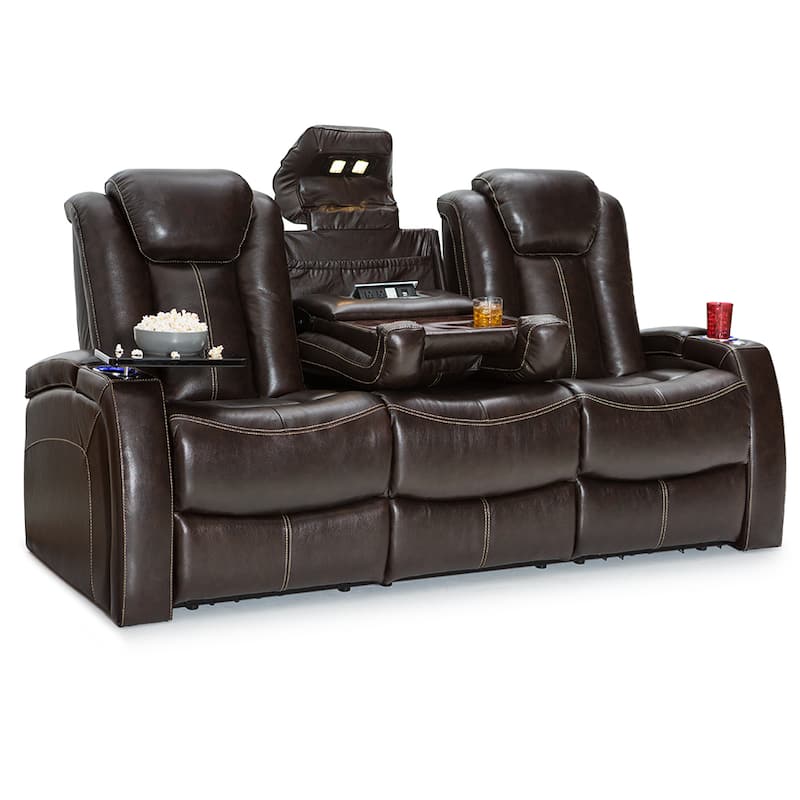 Seatcraft Republic Brown Leather Home Theater Power Recline Sofa