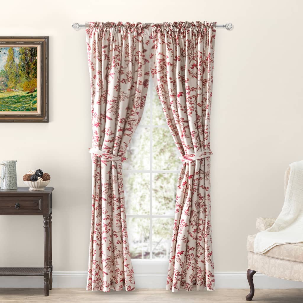 These 100% fine cotton rod pocket tailored panel pair and valance features elegant needlework. All have intricate bordered sides and bottom hems, joined with mitered corners! Reminiscent of timeless beauty, classic and sophisticated, this soft lightweight curtain adds elegance to any room, diffusing light and providing privacy. Rod Pocket design ensures quick and easy hanging. Panel pair and valance are sold separately.