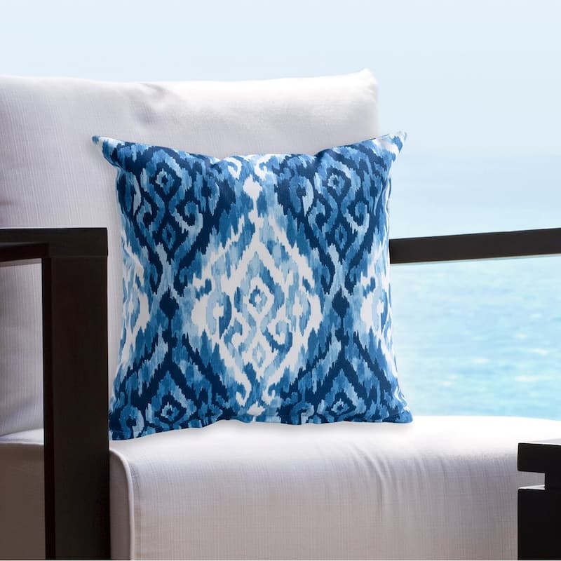 Bring the style outdoors with this Solarium Calypso outdoor accent pillow by Siscovers, this accent pillow can beautifully transition though seasons as it is UV/fade, mildew, water and stain resistant. Made durable and easy to clean with just soap and water. You can either brush off loose dirt and gently hose down, or for those stubborn stains prepare a solution of 1 cup of bleach and 1/4 cup of mild soap (such as Woolite or Dawn dishwashing liquid) per gallon of clean water. The solution should be sprayed on (do not soak) the face of the fabric and gently brush. Do not keep the solution on the fabric for more than 2 minutes before rinsing with cool water.