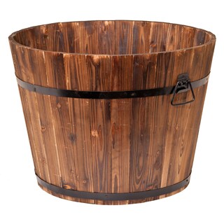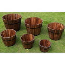 These are a good replacement for my worn out/falling apart wooden whisky barrel planters. They are approximately the same size, perhaps just a bit smaller. They will do the job nicely and I hope will look good for a lot longer than the wooden kind.