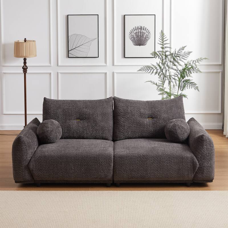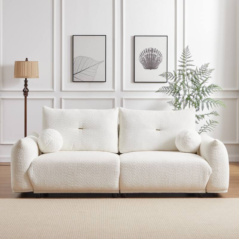 Soft Lambswool Sofa with Ball Pillows, Ergonomic Design, 2 Sets - Beige - Symmetrical