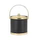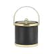 This stylish ice bucket features a metal bale handle, metal lid, and metal ball knob. Available in four different trims, each bucket is covered in a sleek black leatherette material.