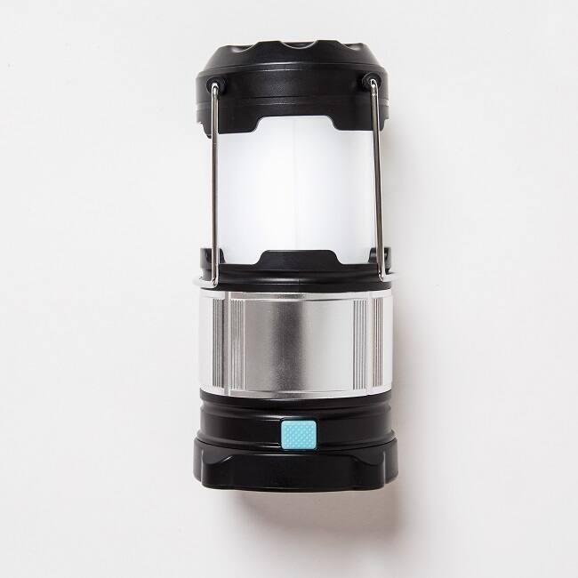 This is the go-to light for any camping adventure or emergency. Hang it as a lantern from your tent or place it on a table at home if the power goes out. Lightweight, collapsible design and foldable handles allow for easy use and portability, perfect for camping, emergencies, traveling, and home use. The light has 4 functions - bright light, dim light, red emergency light, red flashing light. This light also has dual USB to charge your portable devices. Enjoy its 4 function use! USB Cord and three AA batteries are included.