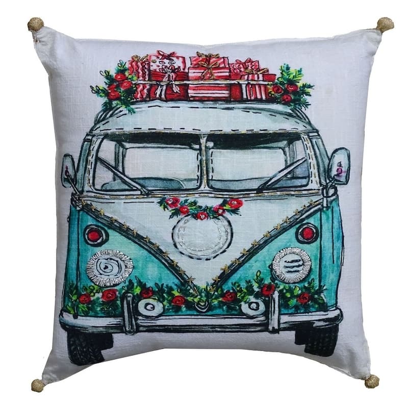 Throw Pillow Cover Christmas Holiday Van Embroidered & Printed
