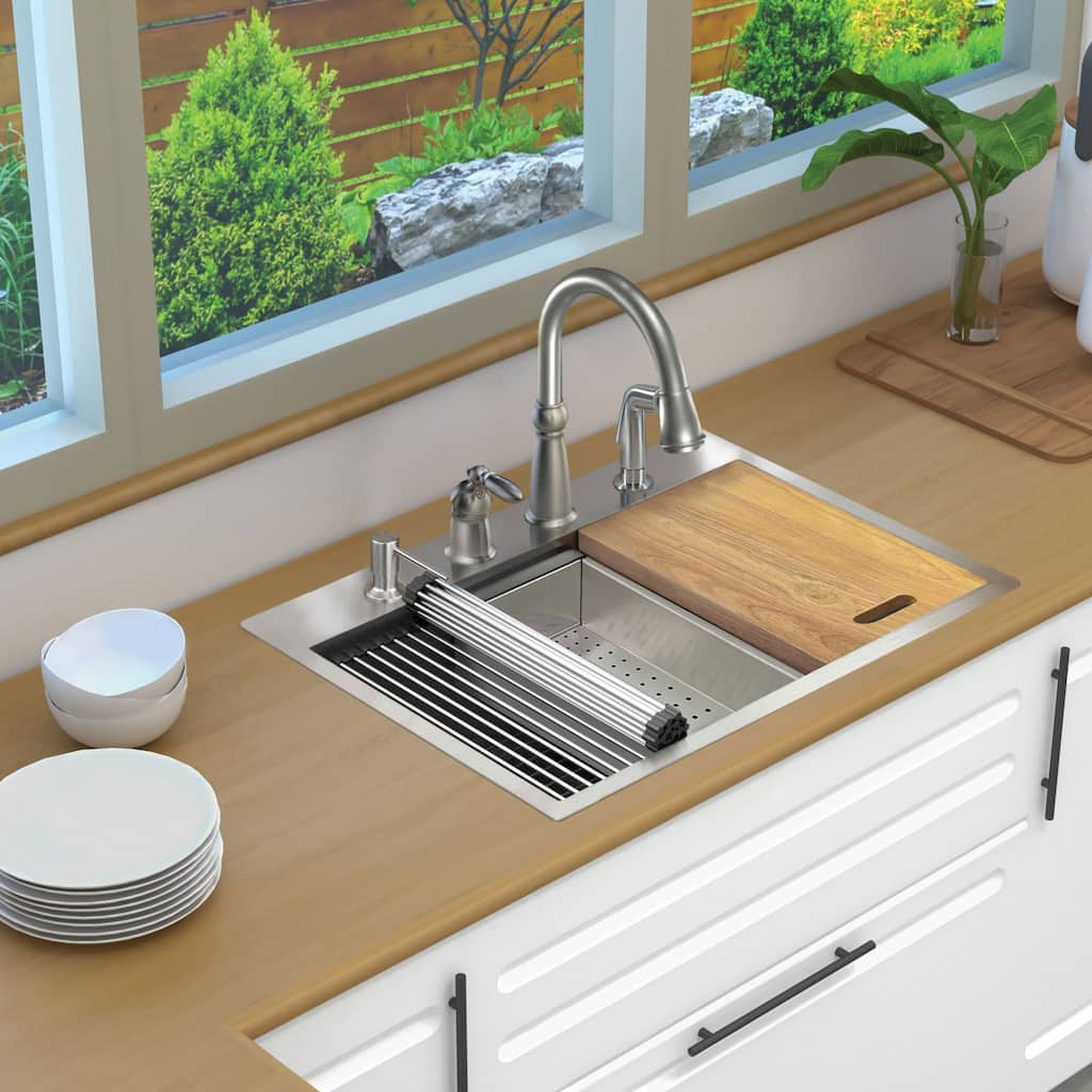 - Sink comes pre-drilled with 5 faucet holes for faucets with 4-1/2" faucet centers