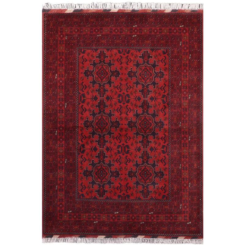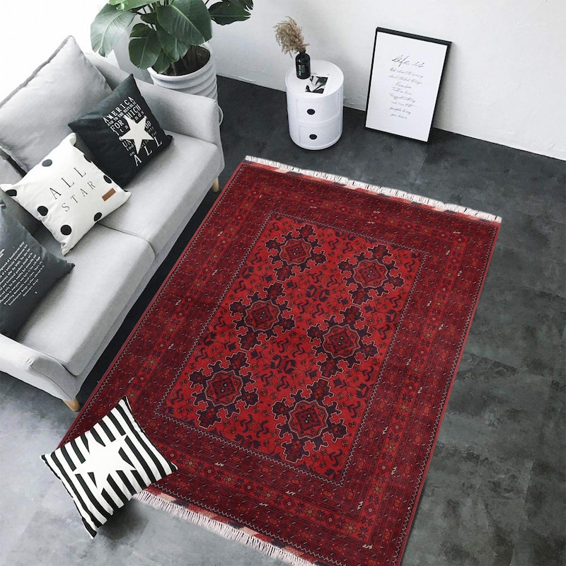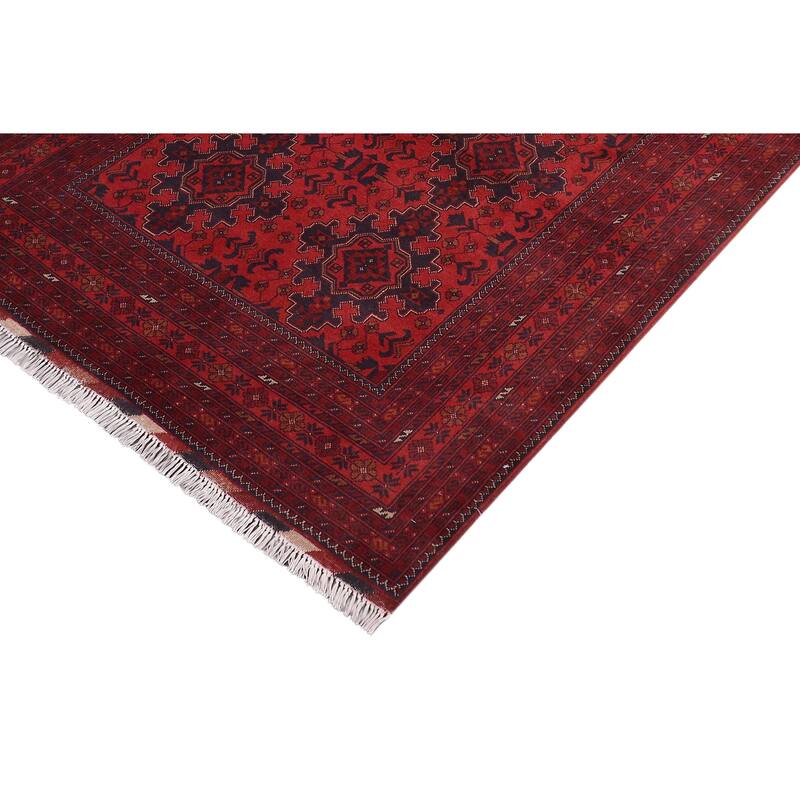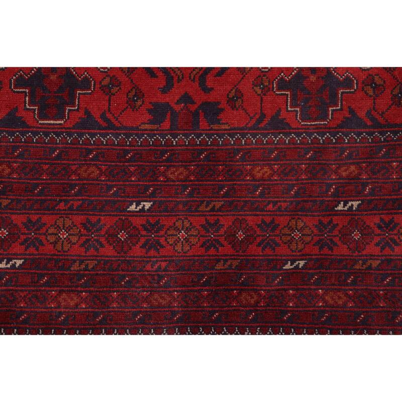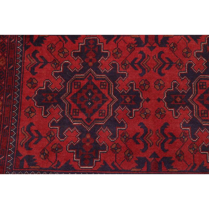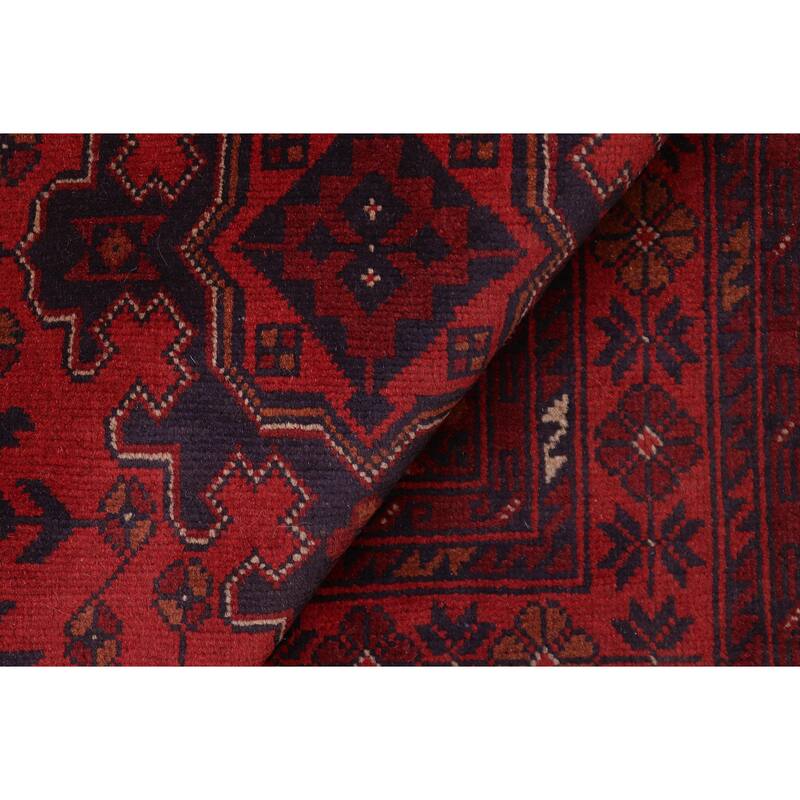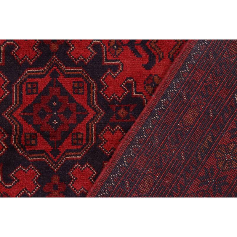 Elegant Khal Mohammadi rugs made by skilled artisans of Northern Afghanistan using premium quality hand-spun wool and vegetable dyes are an exquisite addition to any decor. Meticulously hand-knotted using the age-old techniques of traditional Turkish or Ghiordes knots, these chic Khal Mohammadi rugs feature intricate designs with a warm color palette of deep reds, dark blues, and luxurious browns. The long-lasting mesmerizing hue in Khal Mohammadi rugs comes from the vegetable dyes made from madder root, indigo, and walnut husks that become more enchanting over time. The Biljilk Khal Mohammadi design showcases stylized floral motifs and a geometric pattern that draws inspiration from nature. The unique weaving style developed by influential rug weaver Khal Mohammad has resulted in rich colors, intricate patterns, and exceptional craftsmanship. Despite the scarcity of specific details about his early life and introduction to the craft, his techniques and designs have made an indelible mark on the world of rug craftsmanship, making these rugs a testament to his unparalleled skill and innovation. The intricate design and the dark hues exude an aura of dreamy serenity and undeniable luxury that will elevate the ambiance of any room.