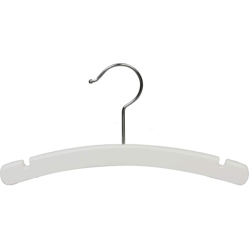 White Arched Wooden Baby Hanger, 10 Inch Wood Top Hangers with Chrome Swivel Hook for Infant Clothes or Onesie