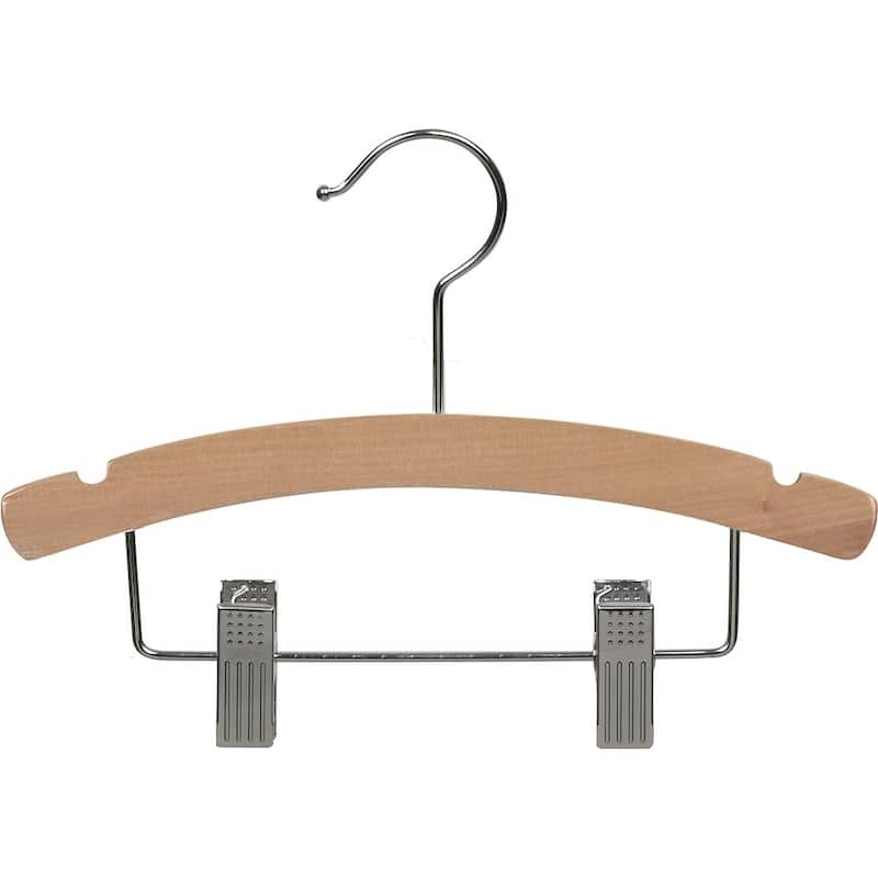 Wooden Kids Combo Hanger with Adjustable Cushion Clips, 12 Inch Hangers with Natural Finish & Chrome Swivel Hook