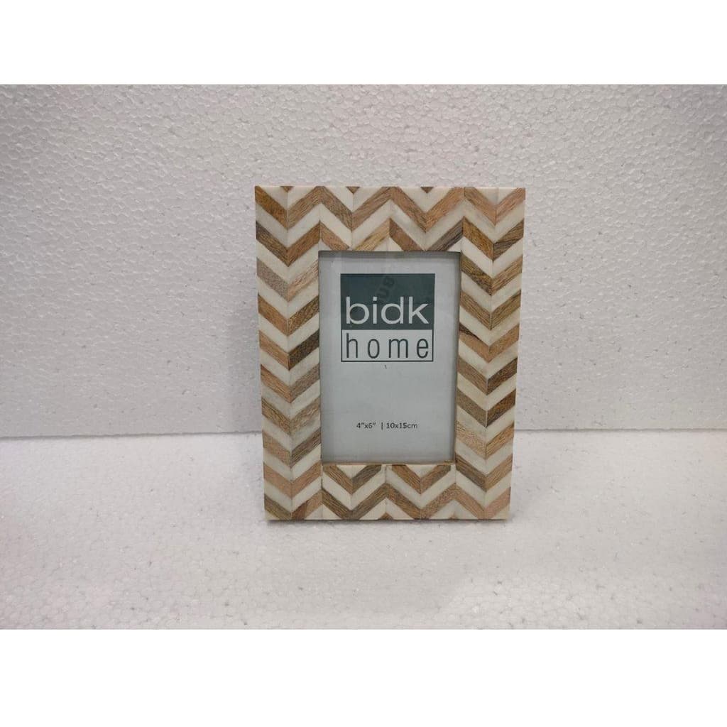 Infuse charm into your home decor with this distinctive zigzag photo frame, blending white and brown hues seamlessly. Showcasing a captivating design, it's the ideal showcase for treasured memories. Add a touch of warmth and nostalgia to your space with this exquisite frame, preserving cherished moments in style.