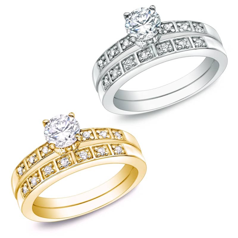 Auriya 1ct TDW Round Diamond Engagement Ring Set 14k Gold