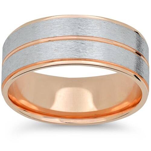 14k Rose & White Gold Two Tone Brushed 6mm Mens Brushed Wedding Band