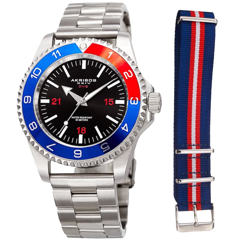 Akribos XXIV Men's Diver Style Quartz Interchangeable Silver-Tone Bracelet Watch