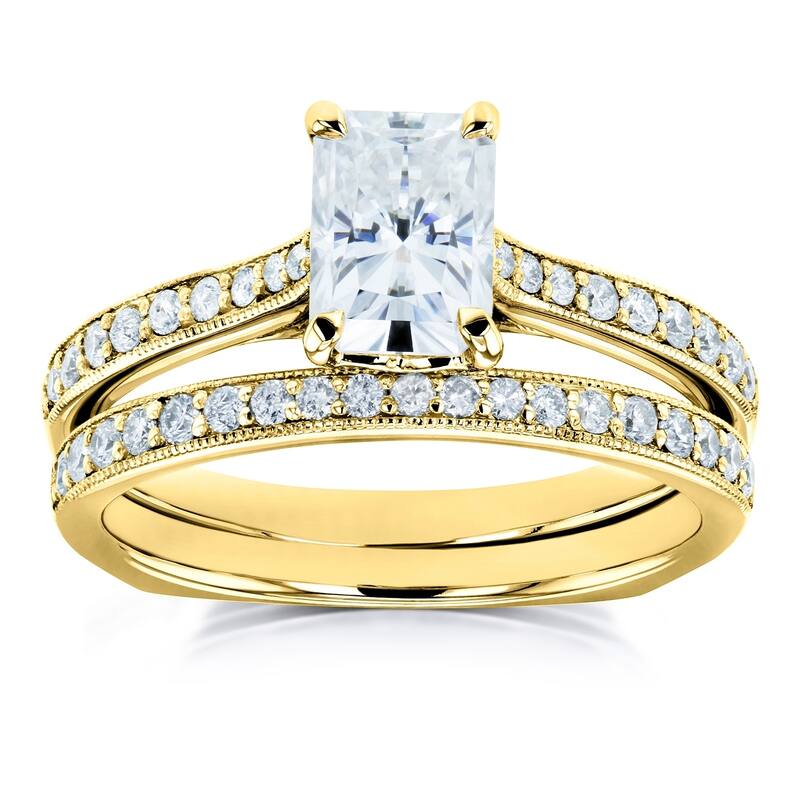 Annello by Kobelli 14k Gold 1 3/5ct TGW Radiant Moissanite and Diamond Square Band Trellis Bridal Rings Set (DEF/VS, GH/I)