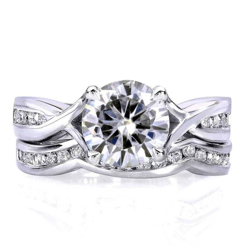 Annello by Kobelli 14k White Gold 1 1/2ct TGW Moissanite and Channel-set Diamond Bridal Rings Set