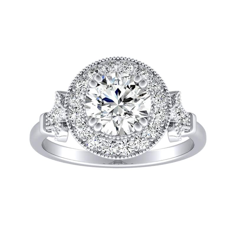 Auriya 14k Gold Vintage 4ct Round Moissanite and 1/3ctw Halo Diamond Engagement Ring