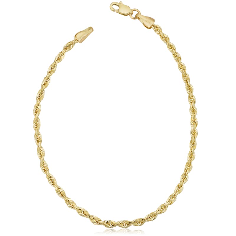 Fremada Unisex 14k Yellow Gold 2.5-mm Solid Rope Chain 7.5 or 8.5-inch Bracelet