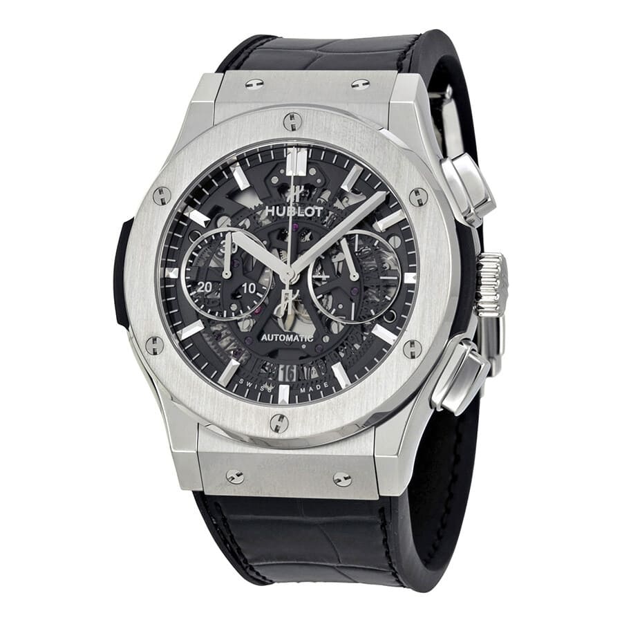 • Case: 42mm round  satin-finished and polished titanium , transparent see-through case back