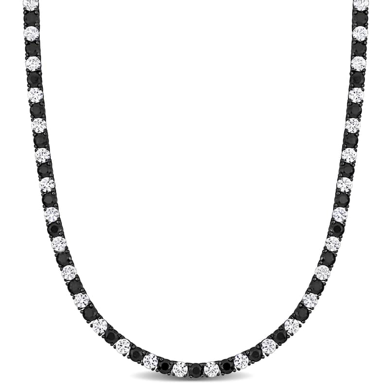 Miadora 40 1/4ct TGW Created White & Black Sapphire Men's Necklace in Black Rhodium Sterling Silver -20 in